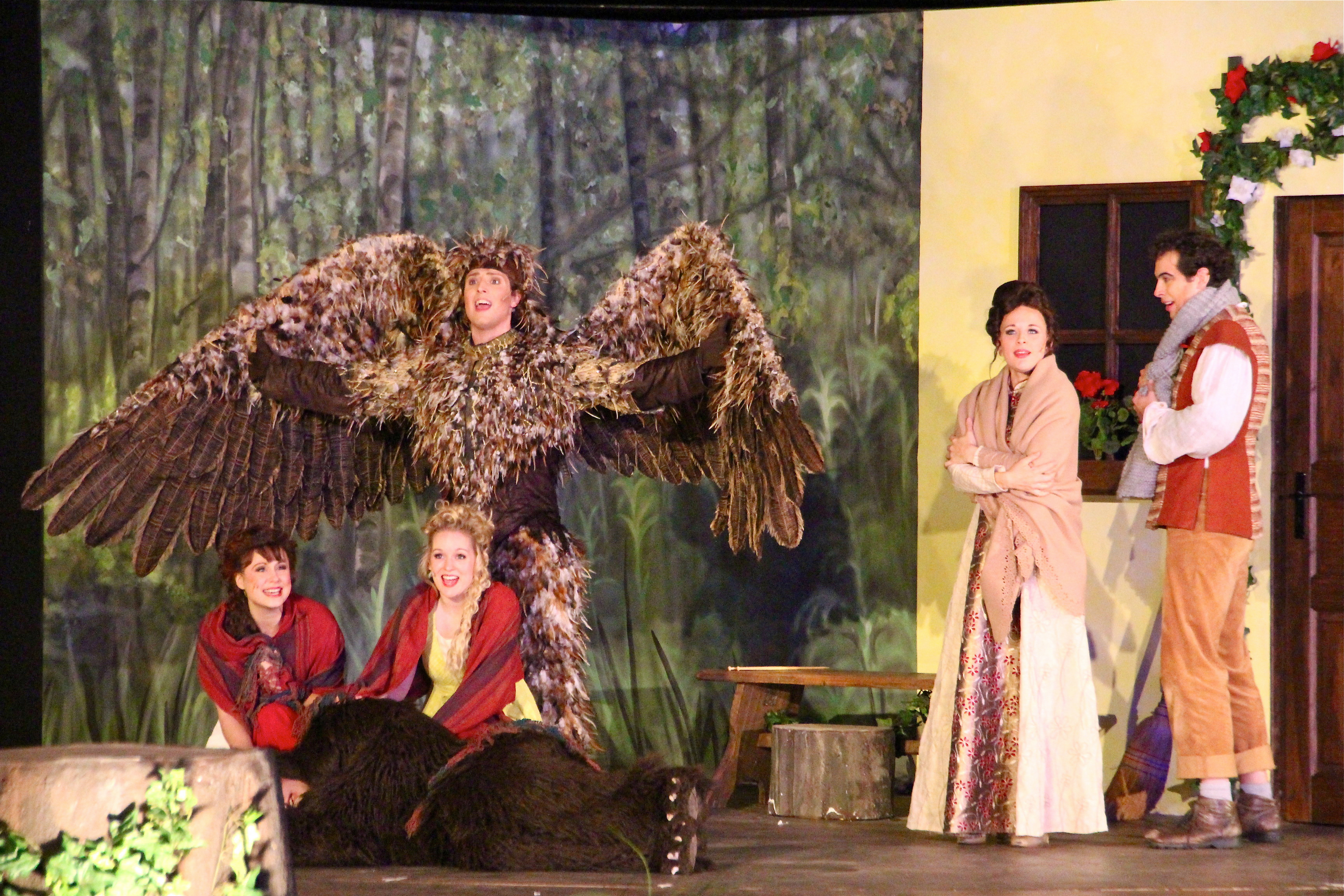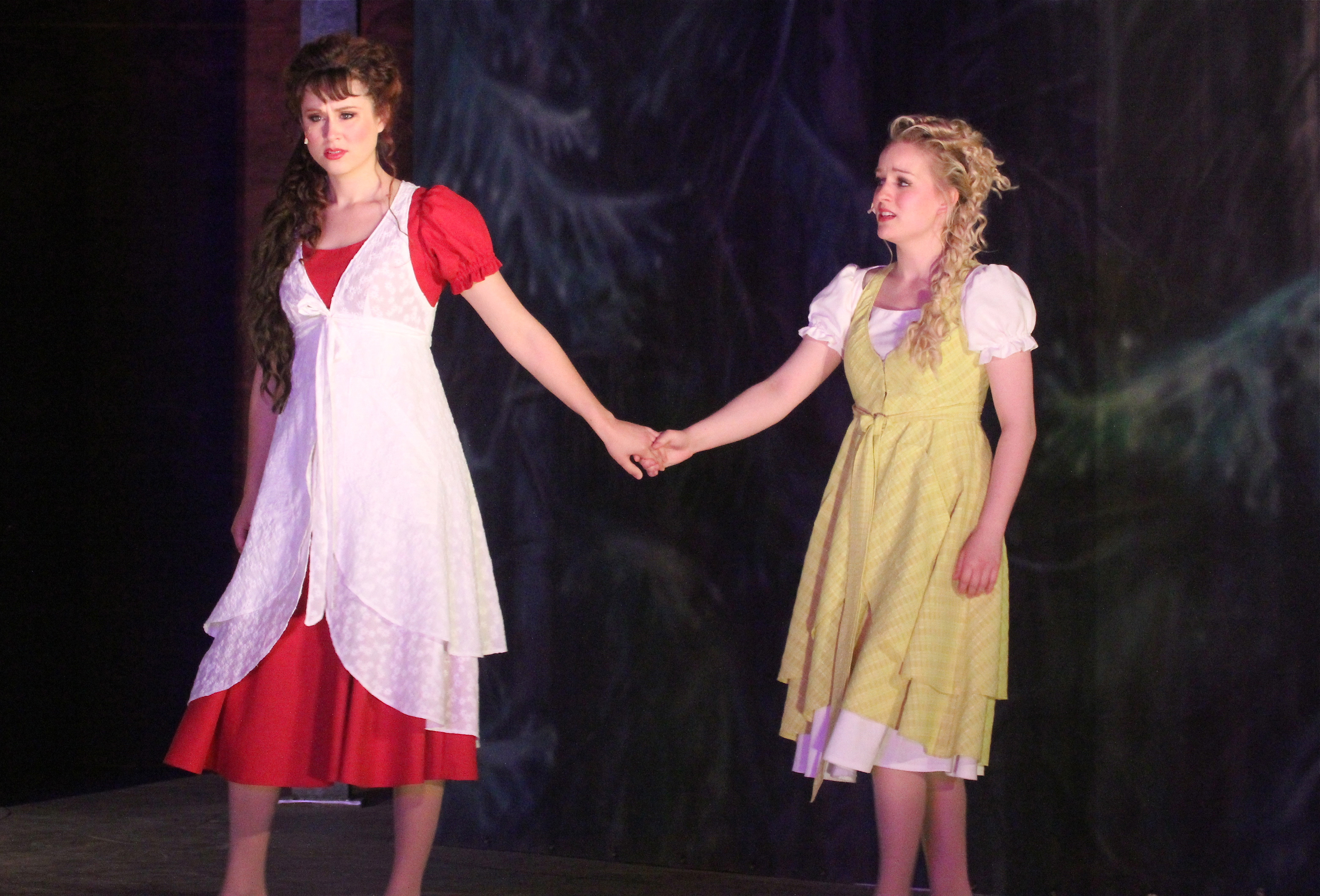 Schneeweißchen und Rosenrot sind zwei wunderhübsche Mädchen, die mit ihrer Mutter im Wald leben. Während sie langsam zu jungen Frauen heranreifen, entbrennt im Land ein erbitterter Krieg: Menschen- und Zwergenkönig bekämpfen sich bis aufs Blut um einen Schatz, den die Zwerge geraubt haben. Der König schickt seine Söhne Rowan und Nevian los, den Schatz zurückzuholen. Seine Vaterliebe vergisst er dabei leider. Die Prinzen begegnen den Schwestern und die Herzen fliegen einander zu. Aber der böse Zwergenkönig verwandelt die Söhne in einen Adler und einen Bären, die sich den Schwes - tern zwar nähern, aber nicht von ihnen erkannt werden. Der König bemerkt zu spät, wie verblendet er war. Aber es wäre kein Märchen, wenn nicht Klugheit und Mut, Liebe und Einsicht am Ende gewinnen würden. Und – ein wenig anders als in alten Zeiten – muss nicht mehr getötet werden. Das Gute siegt auch so.
